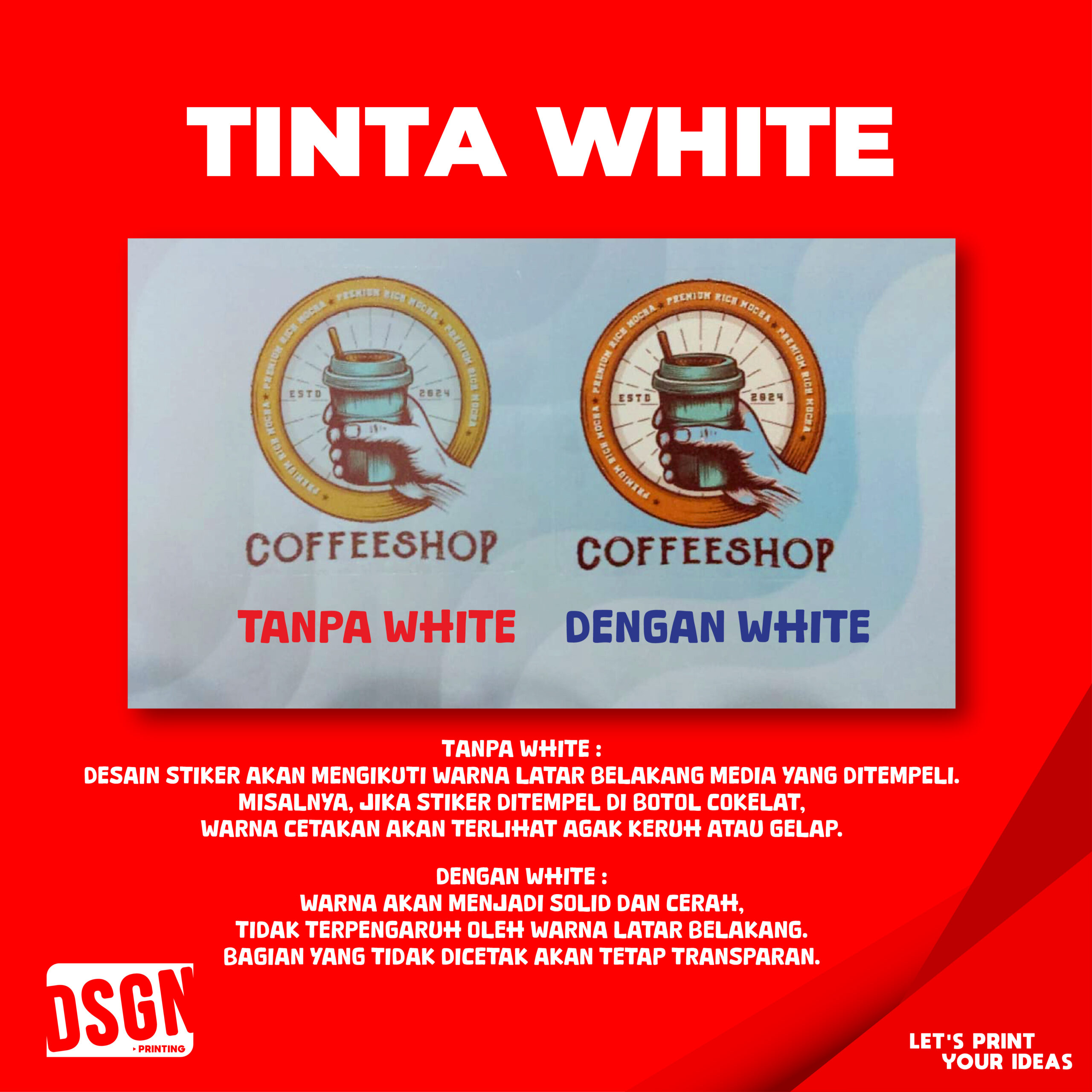 – Terdapat 2 pilihan cetakan, pakai white atau tidak. Untuk keterangan lebih jelas dapat dilihat di foto.